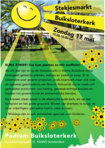 De jaarlijkse Stekjesmarkt komt weer! Als elk jaar zijn er op de Stekjesmarkt volop kramen waar u biologisch geteelde planten, stekjes en zaden kunt kopen. Ook is er veel informatie over groene projecten, zoals bijenteelt maar ook over de (groene) geschiedenis van Noord. Verder zijn er diverse (vaak zelfgemaakte) producten: van honing, geneeskrachtige kruiden en boeken tot ambachtelijke biertjes. Lees verder